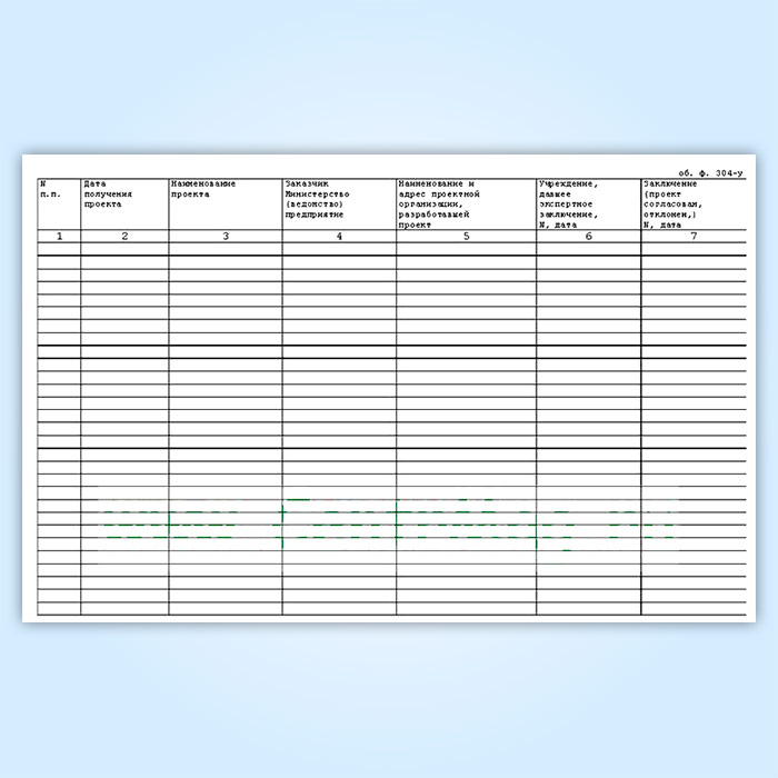 Журнал регистрации проектов и заключений по проектам (форма 304/у)