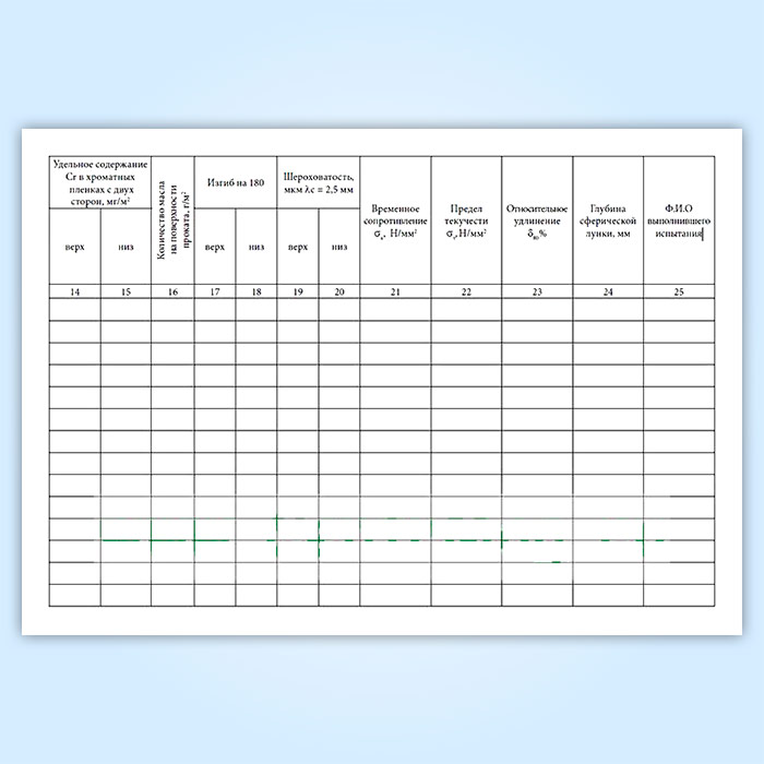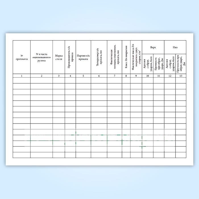 Журнал регистрации результатов испытаний горячеоцинкованного проката