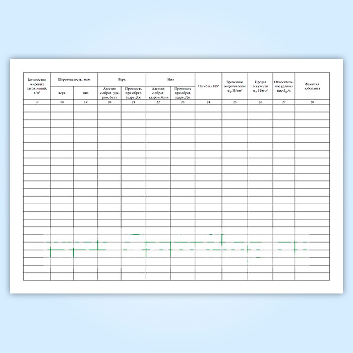 Журнал регистрации результатов испытаний горячеоцинкованного проката. Входной контроль