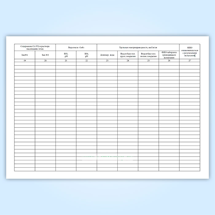 Журнал регистрации результатов испытаний параметров технологического процесса окраски