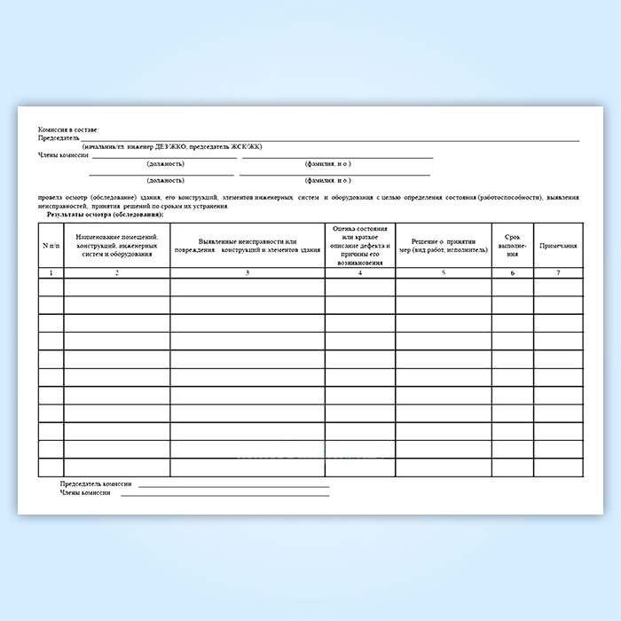 Графы журнала регистрации результатов осмотра (обследования) жилого здания (строительных конструкций, инженерных систем и оборудования):