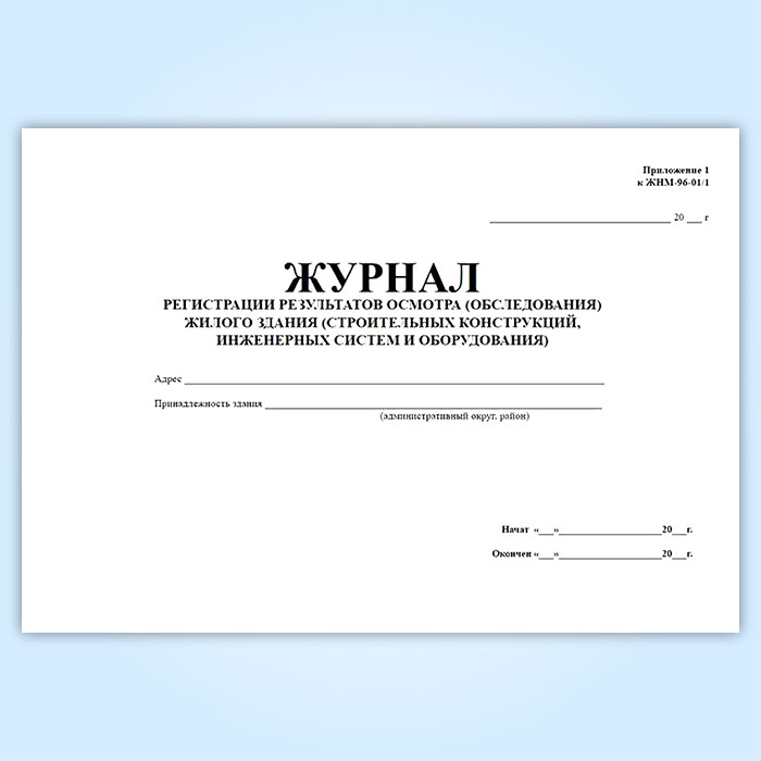 Журнал регистрации результатов осмотра (обследования) жилого здания (строительных конструкций, инженерных систем и оборудования). (Приложение к форме ЖНМ-96-01/1)