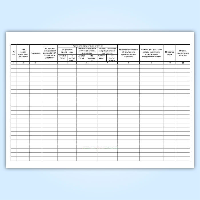 Журнал регистрации результатов приемочного контроля для аптек