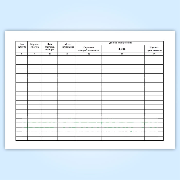 Результаты регистрации, осмотра электроинструмента и электрооборудования, а также основные сведения о проверках заносятся в специальный журнал.