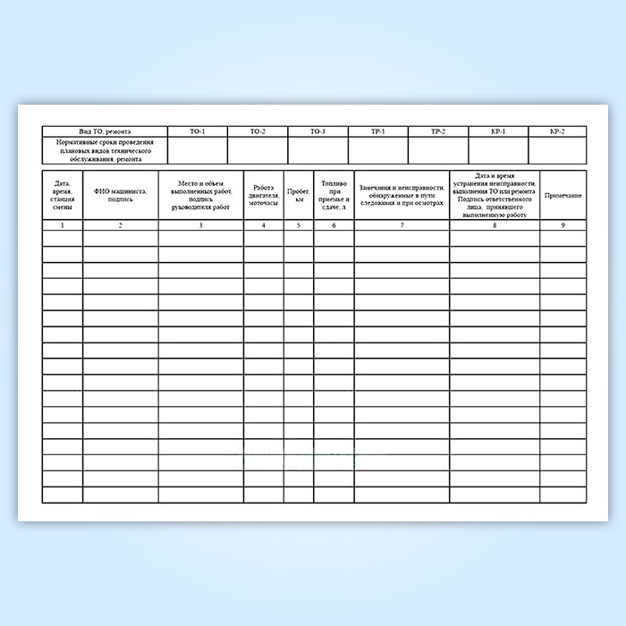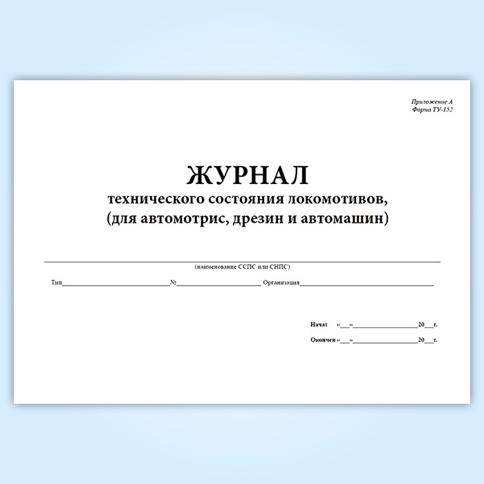 Журнал технического состояния локомотивов (для автомотрис, дрезин и автомашин) (форма ТУ-152)