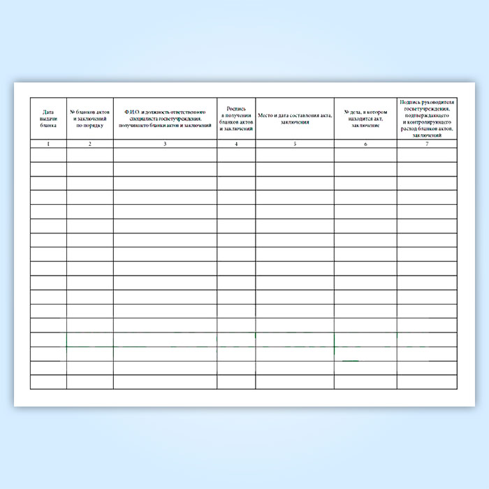 Бланки актов и заключений являются документами строгой отчетности и нумеруются (исправления и неточности при их заполнении не допускаются); учет прихода и расхода бланков актов и заключений ведется в специальном журнале.