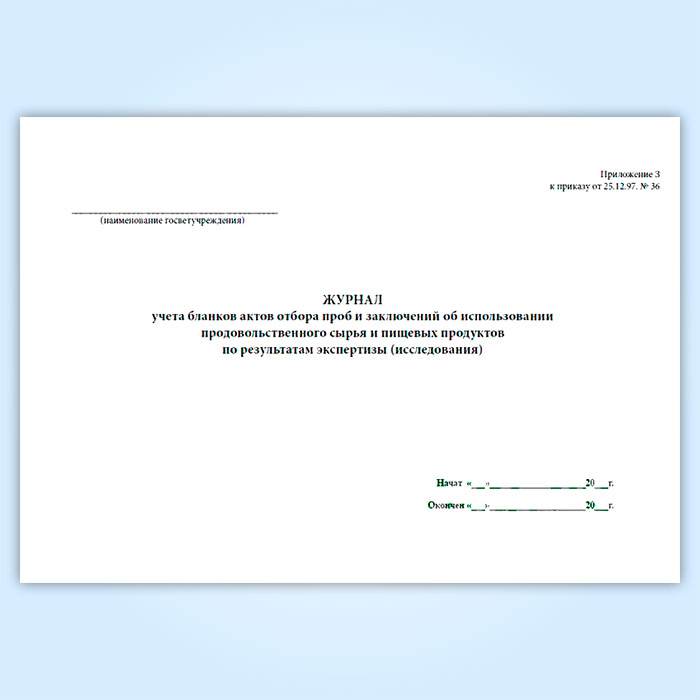 Журнал учета бланков отбора проб и заключений об использовании продовольственного сырья и пищевых продуктов