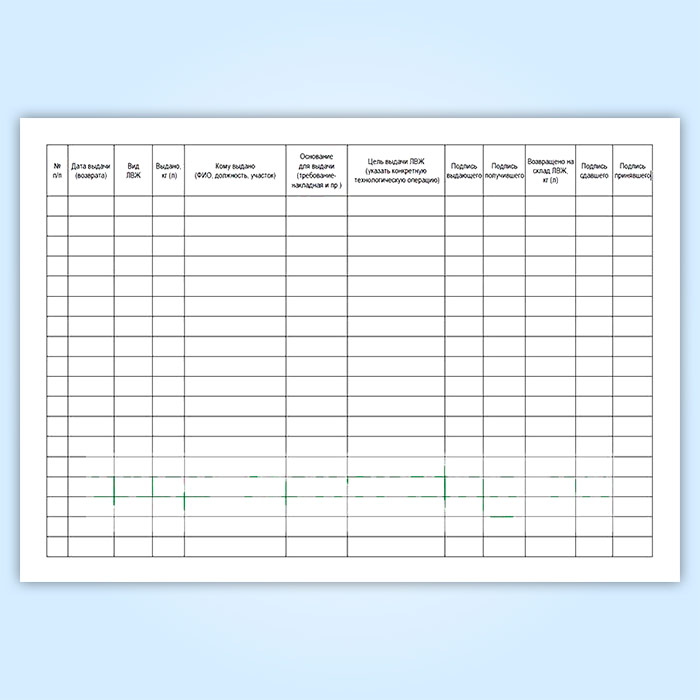 Журнал учета выдачи и возврата легковоспламеняющихся жидкостей
