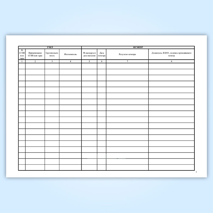 Журнал учета и периодического осмотра съемных грузозахватных приспособлений (СГЗП) и тары