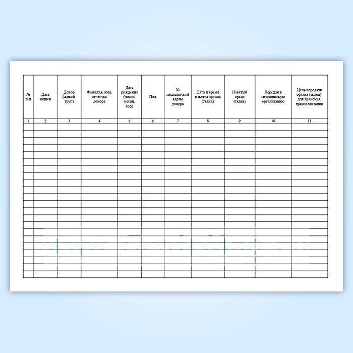 5. На каждый случай изъятия органов (тканей) у донора органов (тканей) в Журнале отводится одна или несколько строк.
