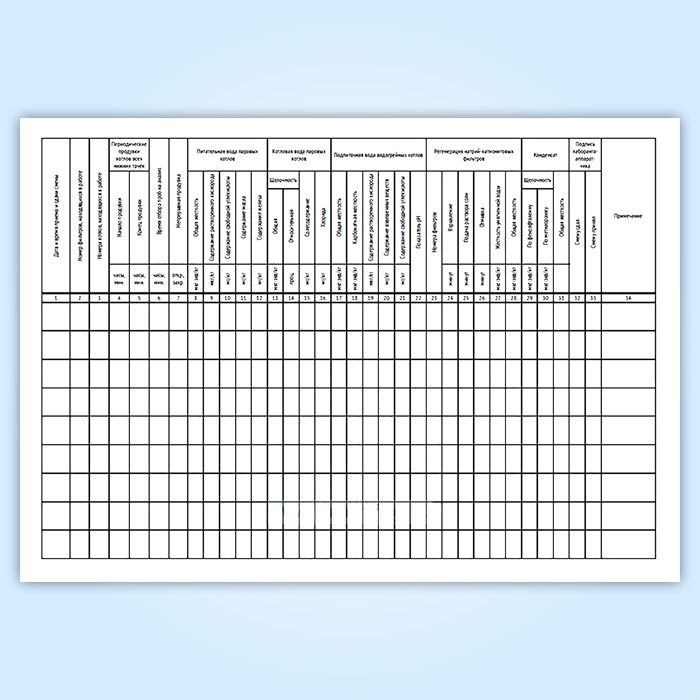 Журнал учета качества питательной, подпиточной, сетевой воды, пара и конденсата содержит графы: