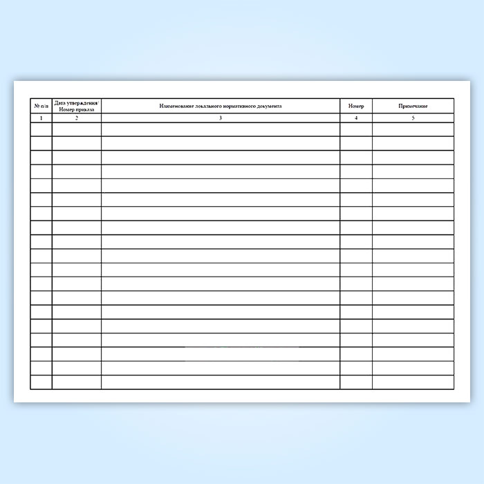 Для фиксации и оперативного поиска сведений о действующих на предприятии локальных нормативных актах целесообразно вести соответствующий журнал (книгу) или такого вида.