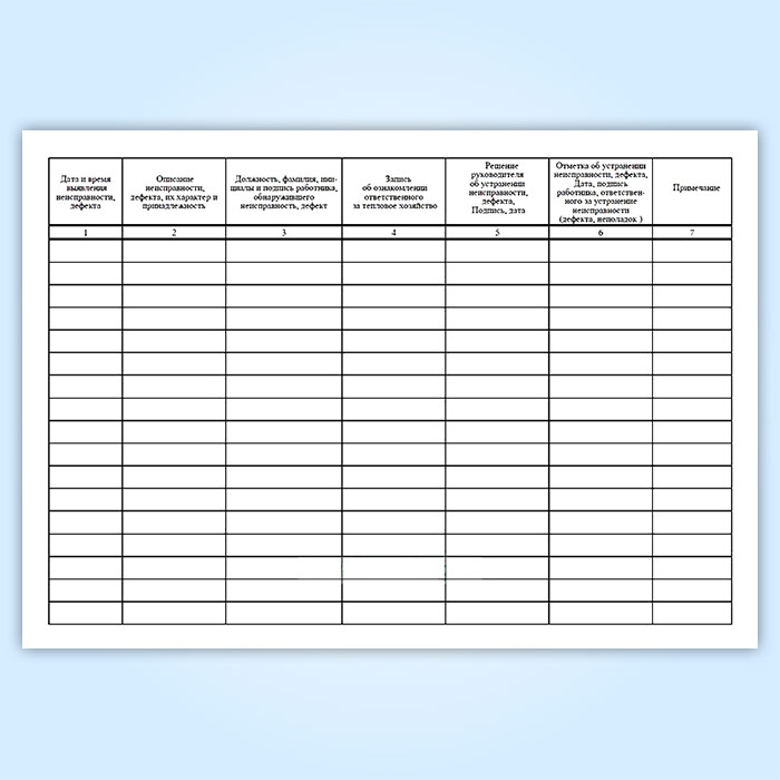 Журнал учета неисправностей, дефектов и неполадок на тепловых энергоустановках