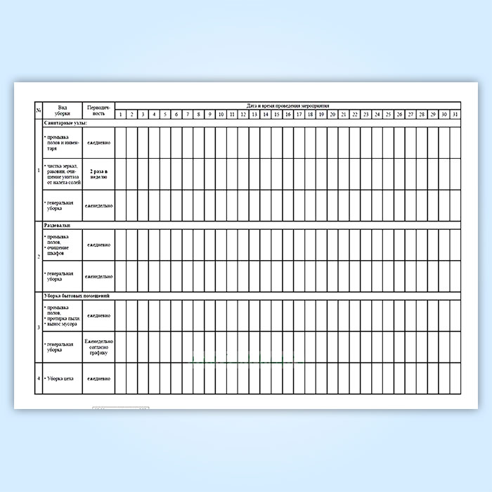 4. Уборка цеха (ежедневно)