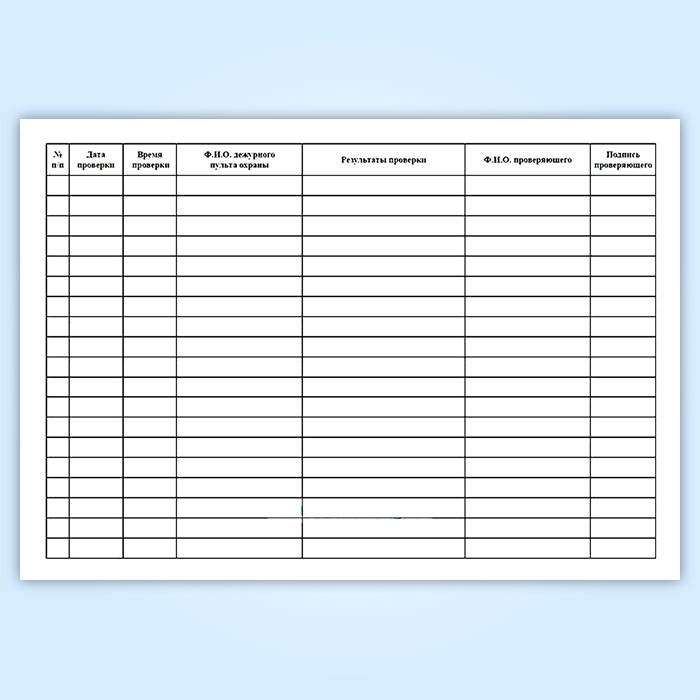См. также Журнал проверки кнопки тревожной сигнализации, графы которого отличаются, их меньше, журнал проще.