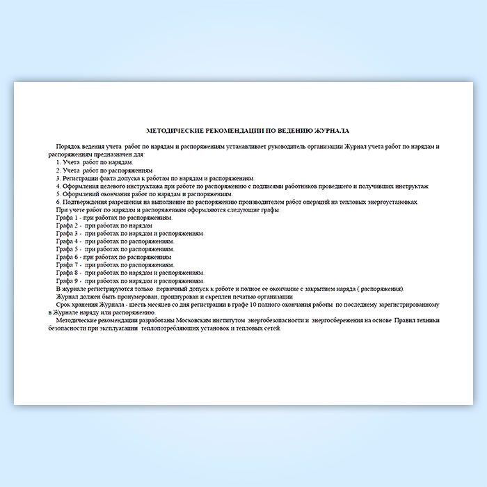 Методические рекомендации по ведению журнала учета работ по нарядам и распоряжениям на тепловых энергоустановках: