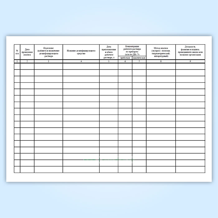 Журнал учета разведения дезинфицирующих средств