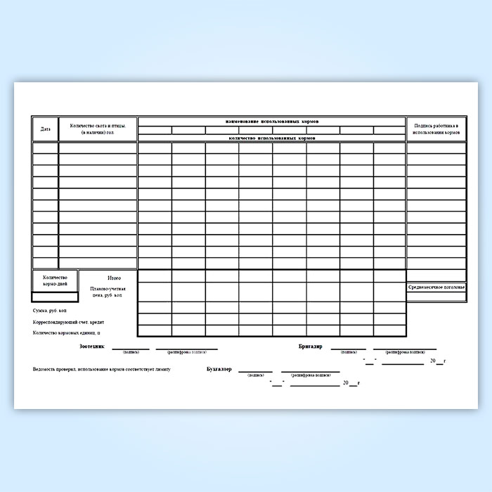 Применяется для оформления и учета ежедневной выдачи кормов на животноводческие фермы.