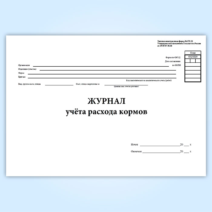 Журнал учета расхода кормов (форма № СП-20)