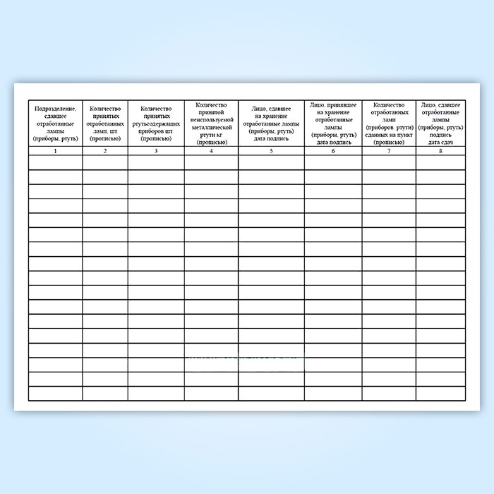 Журнал учета ртутьсодержащих ламп
