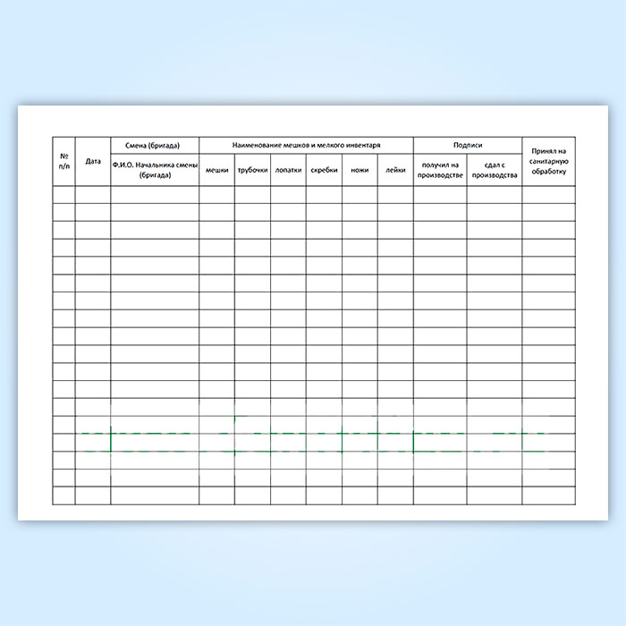 Учет, выдача и сдача отсадочных мешков и мелкого инвентаря ведется путем заполнения соответствующего журнала.