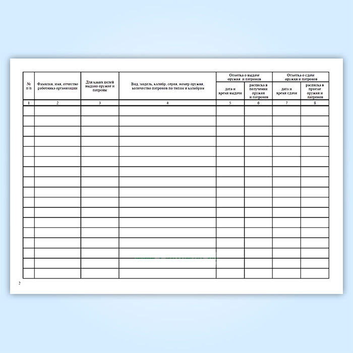 Книга выдачи и приема оружия, патронов содержит следующие графы: