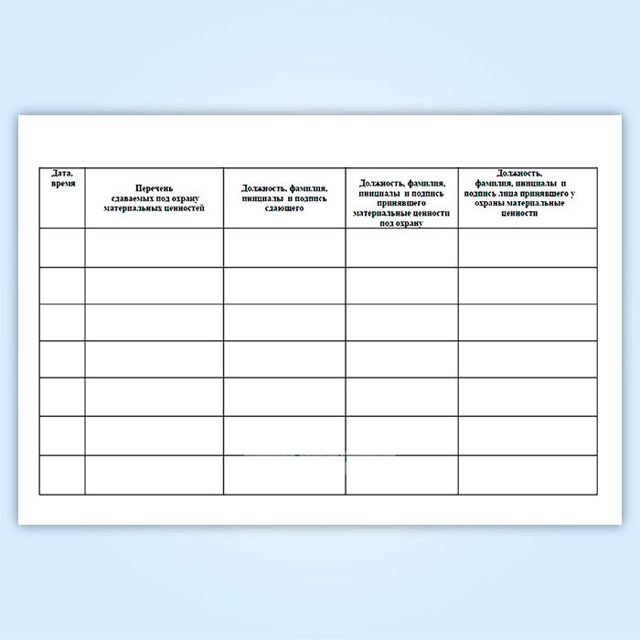 Книга приема-передачи материальных ценностей под охрану