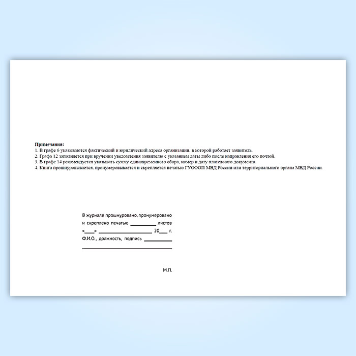 Книга регистрации заявлений и выдачи лицензий и разрешений