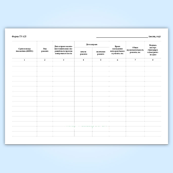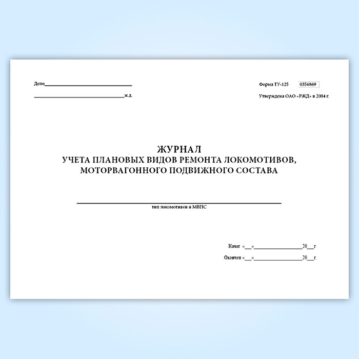Книга учета плановых видов ремонта локомотивов, моторвагонного подвижного состава (форма ТУ-125)