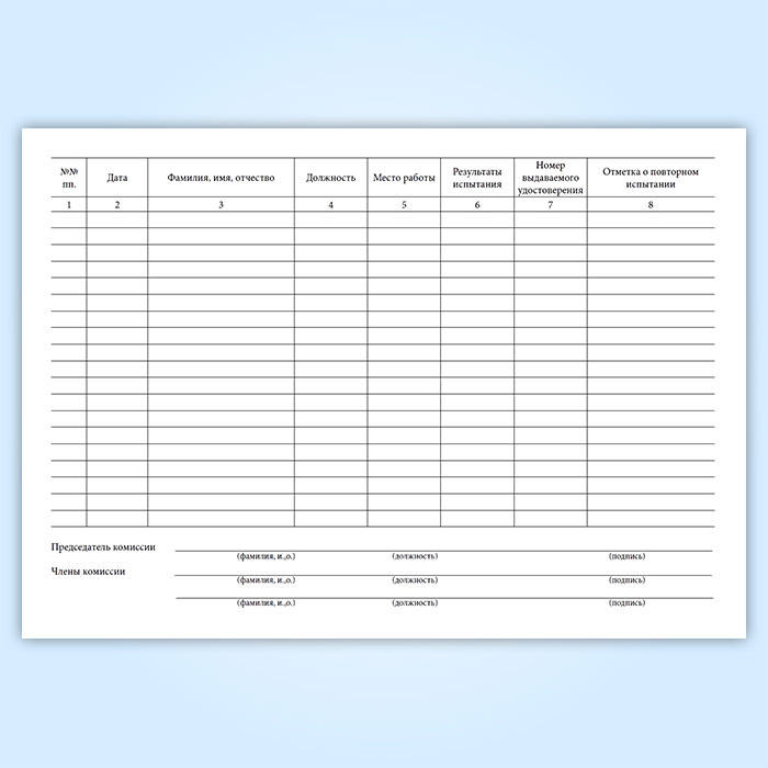 8. Основным документом учета работы комиссии по проведению испытаний является специальная "Книга учета результатов испытаний в знании Правил технической эксплуатации железных дорог Российской Федерации, других нормативных актов МПС России, должностных инструкций и Положения о дисциплине работников железнодорожного транспорта Российской Федерации" (форма РБУ-10), хранящаяся у председателей комиссий или в отделе кадров предприятий и подразделений, служб и соответствующих управлений как документ строгой отчетности.
