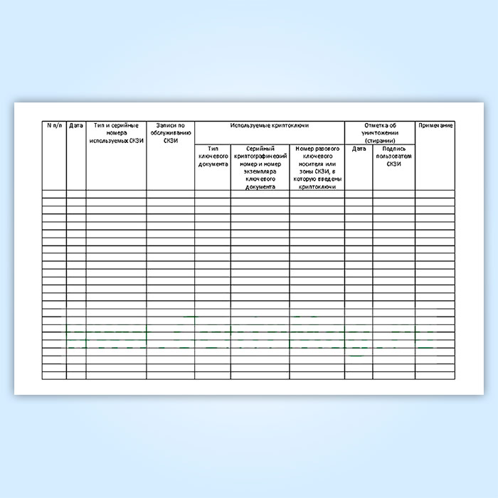 Форма технического (аппаратного) журнала соответствует Приложению №3 к Приказу ФАПСИ от 13.06.2001 N 152 "Об утверждении Инструкции об организации и обеспечении безопасности хранения, обработки и передачи по каналам связи с использованием средств криптографической защиты информации с ограниченным доступом, не содержащей сведений, составляющих государственную тайну"