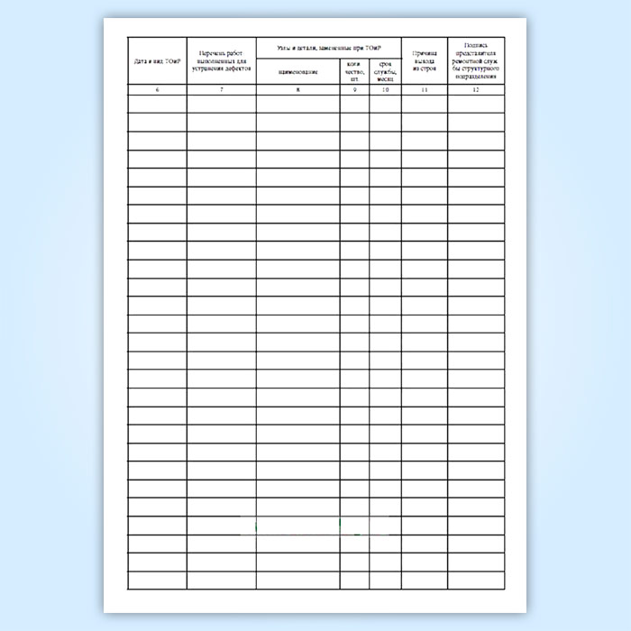 Записи об износе и обнаруженных дефектах, а также результаты осмотров (в том числе осмотров по графику) должны заноситься в агрегатный журнал в день осмотра или ревизии оборудования, а записи о выполненных ремонтных работах – не позднее чем в двухдневный срок после окончания ремонта.