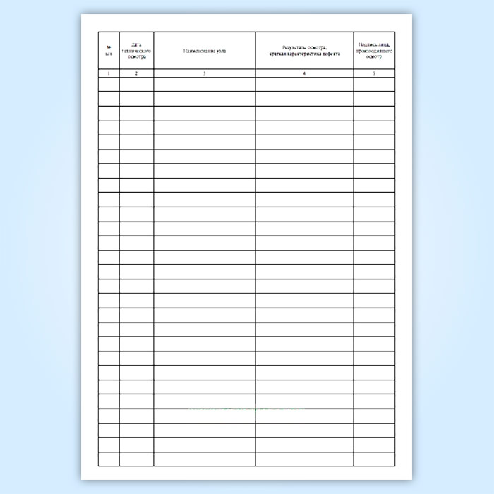 Четные страницы агрегатного журнала предназначены для фиксации дефектов, обнаруженных при осмотрах и ревизиях оборудования, нечетные страницы — для записей о выполненных работах по их устранению.