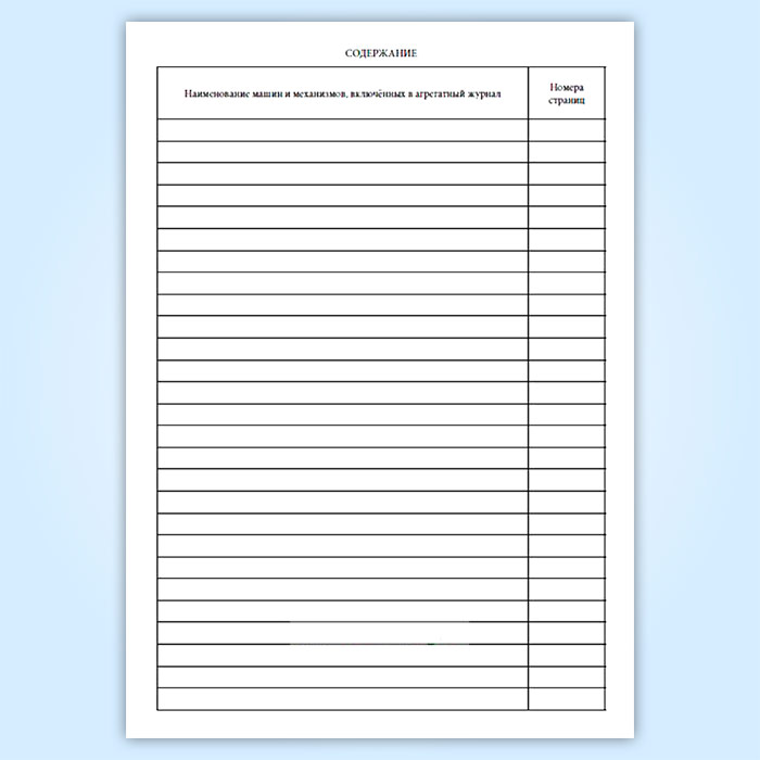 При включении в журнал нескольких машин или механизмов для каждого из них отводится соответствующее число страниц, которые указываются в оглавлении агрегатного журнала.