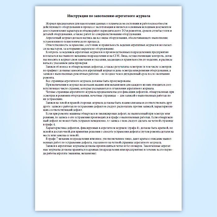 Агрегатный журнал должен вестись на все виды оборудования, обеспечивающего выполнение установленного технологического процесса.