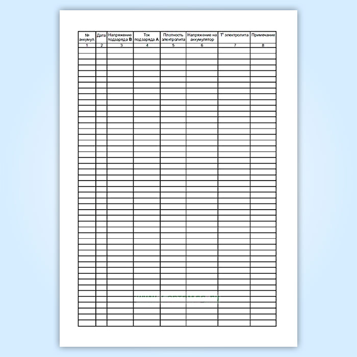 Аккумуляторный журнал - это книга для систематической записи контрольных измерений по АКБ, результатов ее осмотра, неисправностей, аварий, характера ремонта, наблюдений при зарядке и разрядке и т. п. сведений, дающая в итоге полную картину жизни, работы и состояния аккумуляторной батареи