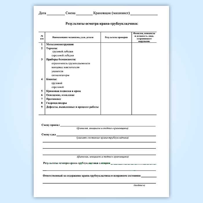 Вахтенный журнал крановщика (машиниста) крана-трубоукладчика