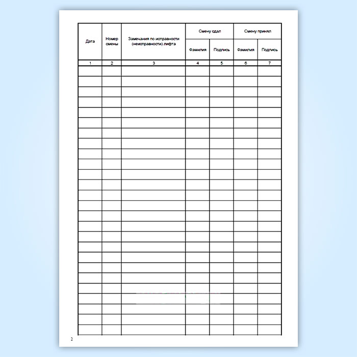 Вахтенный журнал лифтера (сдачи и приема смен)