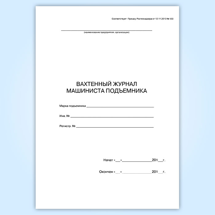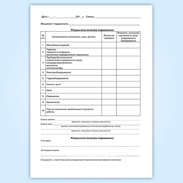 Вахтенный журнал машиниста подъемника