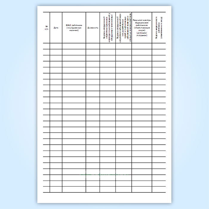 Графы гигиенического журнала (сотрудники):