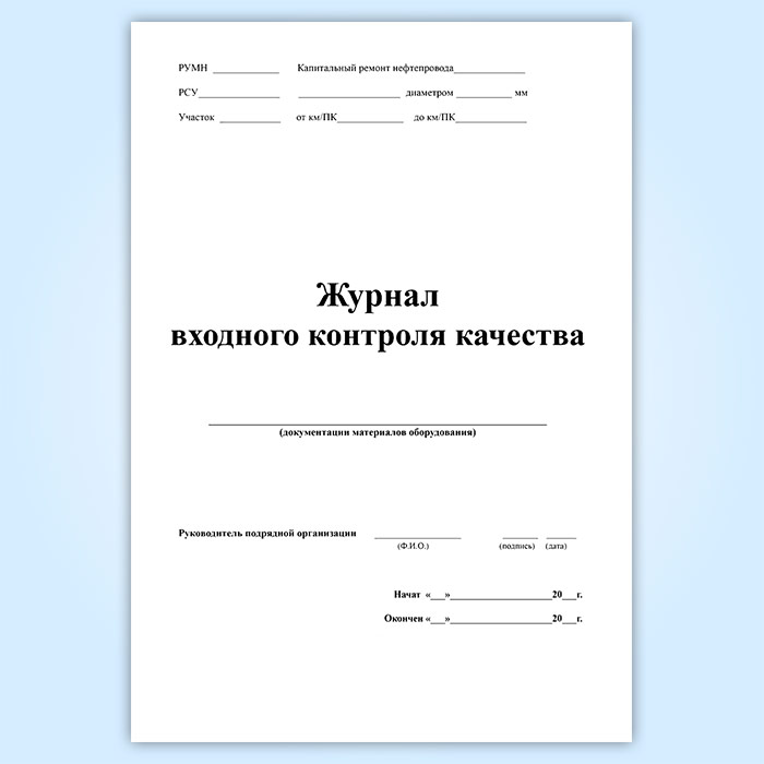 В соответствии с действующим законодательством, каждое предприятие, осуществляющее выполнение такого рода работ, обязано купить журнал входного контроля качества, форма 12 и вести его согласно установленному порядку.