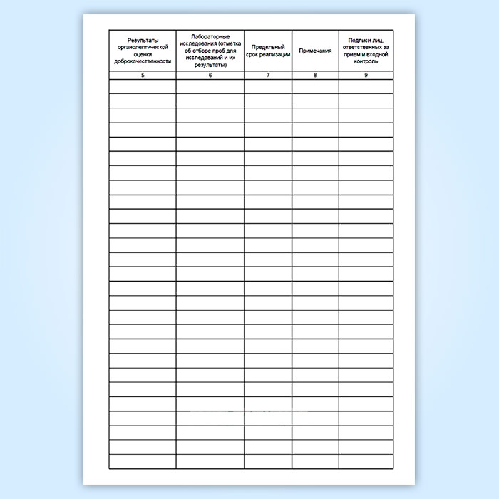 Графы журнала входного контроля пищевых продуктов, продовольственного сырья:
