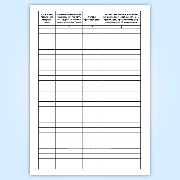 Журнал входного контроля пищевых продуктов, продовольственного сырья