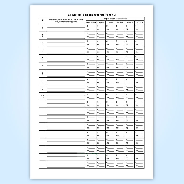 3.Журнал рассчитан на учебный год. Ведение в нем соответствующих записей обязательно для каждого воспитателя.