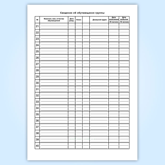 Фамилии обучающихся, зачисленных в группу продленного дня в течение года, записываются в журнале в конце списка.