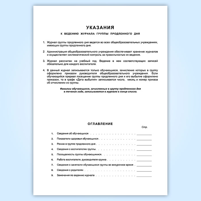 УКАЗАНИЯ К ВЕДЕНИЮ ЖУРНАЛА ГРУППЫ ПРОДЛЕННОГО ДНЯ