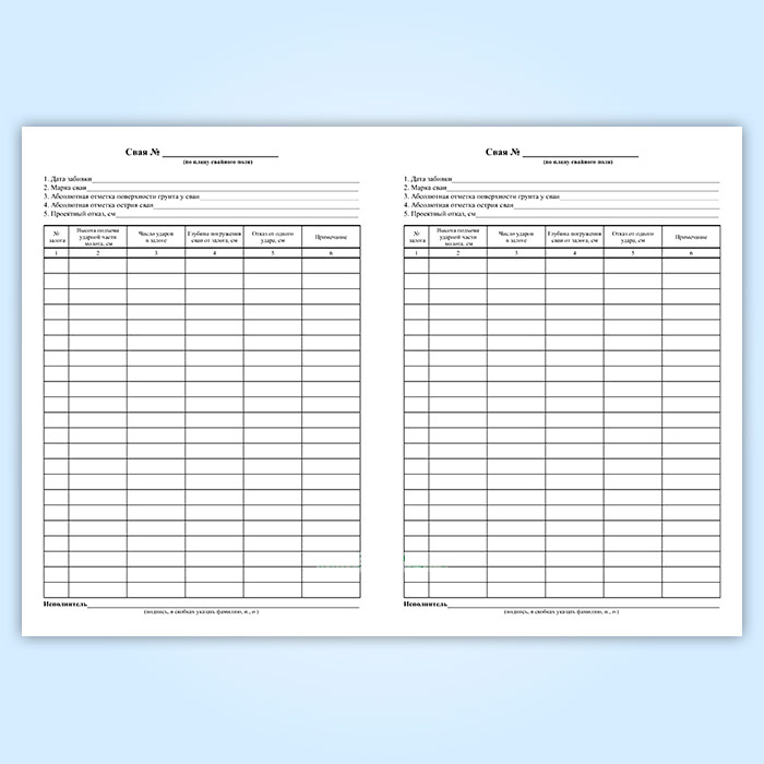 Форма журнала забивки свай, Ф-36 утверждена Распоряжением Росавтодора от 23.05.2002 N ИС-478-р, в настощее время отмененного.
