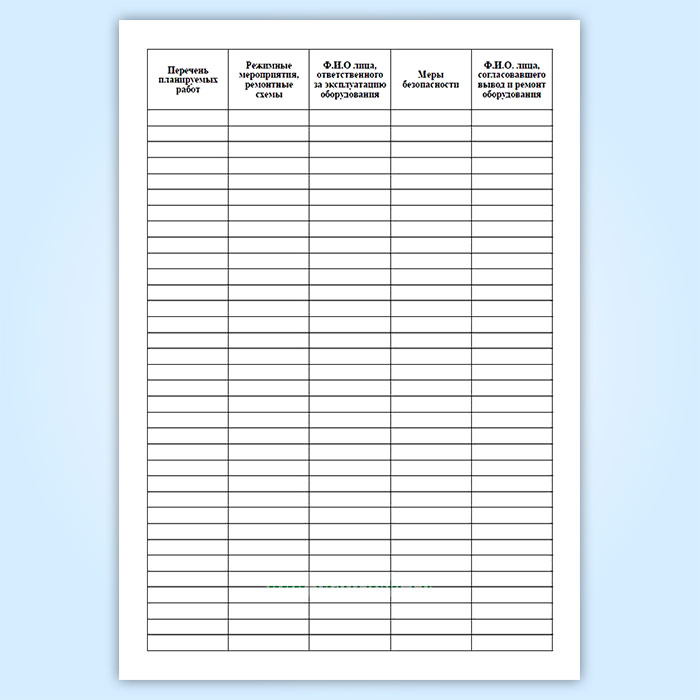 Журнал заявок на вывод в ремонт оборудования содержит графы:
