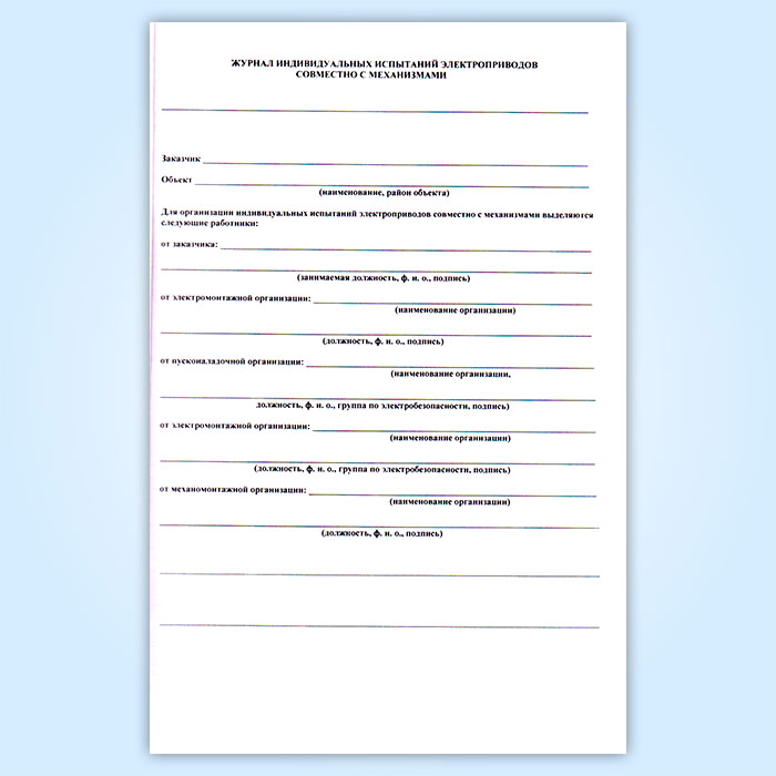 Для организации безопасных индивидуальных испытаний механизмов заказчик должен вести журнал.