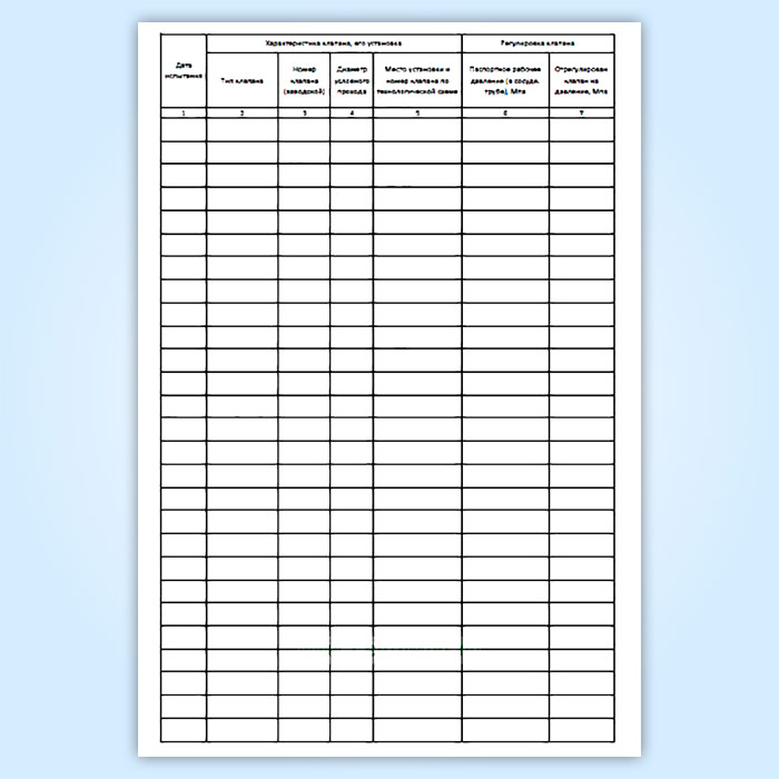Журнал испытаний предохранительных клапанов
